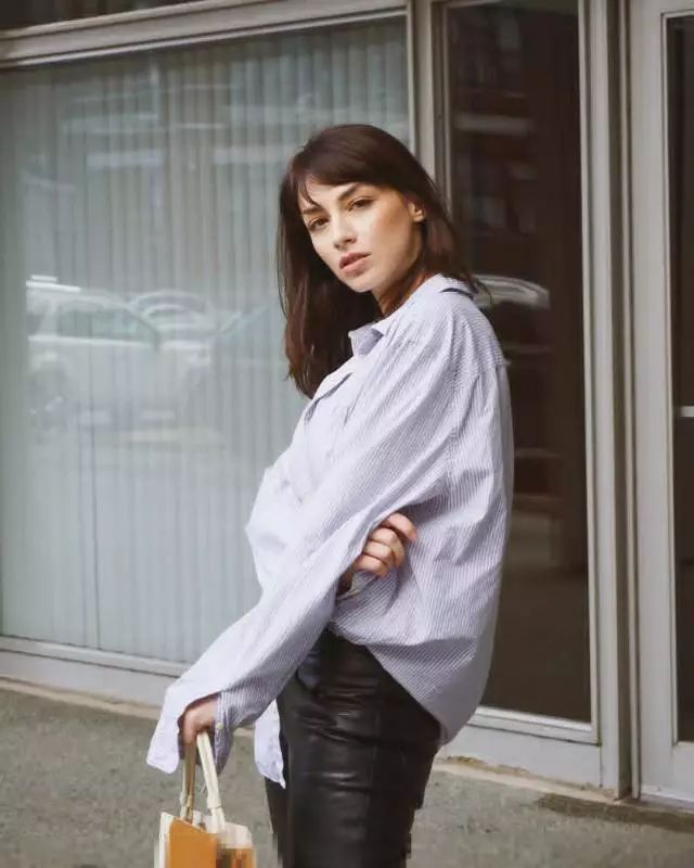 春夏之际,出街必备的白色和蓝色条纹衬衫与各种西装裤和阔腿裤搭配,既简单方便,拍起照来也相当出镜。