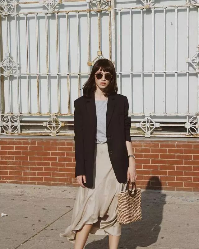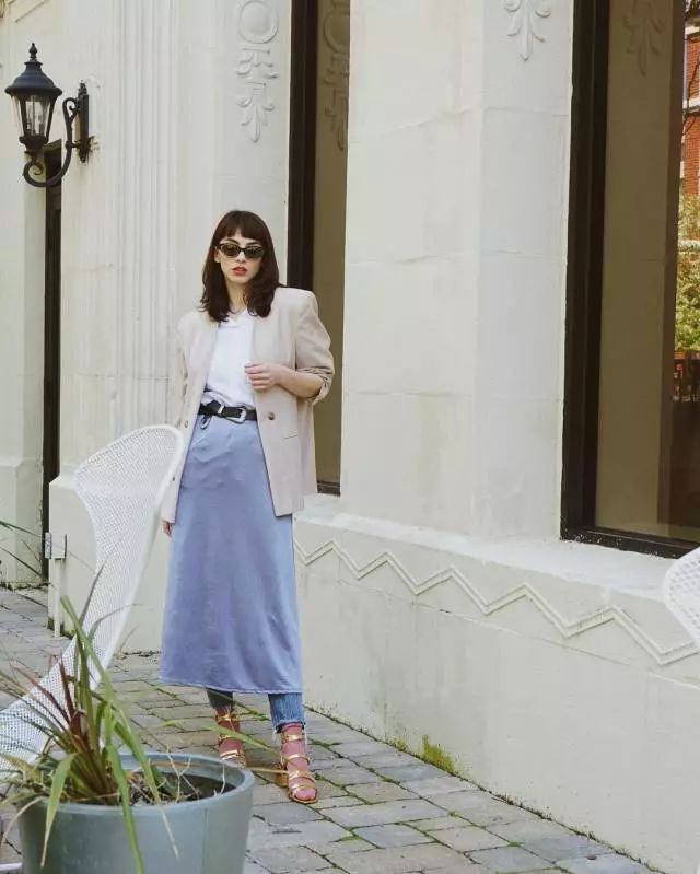 文艺清新的气质穿搭总少不了各种裙装。各类肉色或天蓝色的鱼尾裙、包臀裙与T恤搭配,外面再配上一件中长款西装外套,优雅而又不失休闲意味~