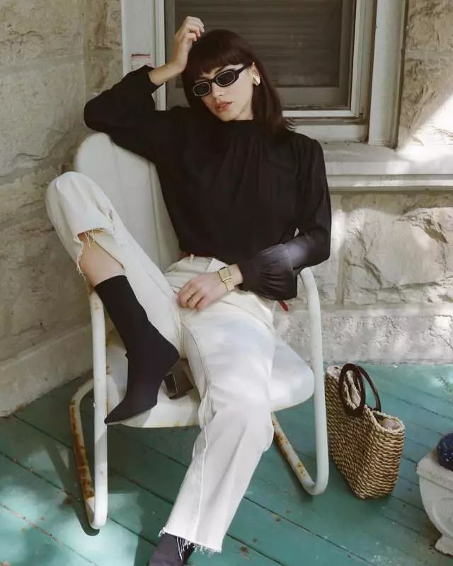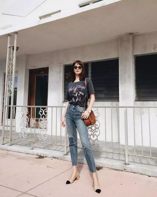 鞋子上我们可以抛掉普通的凉鞋或运动鞋,以Chanel的双色方跟鞋或猫跟鞋、乐福鞋来搭配。