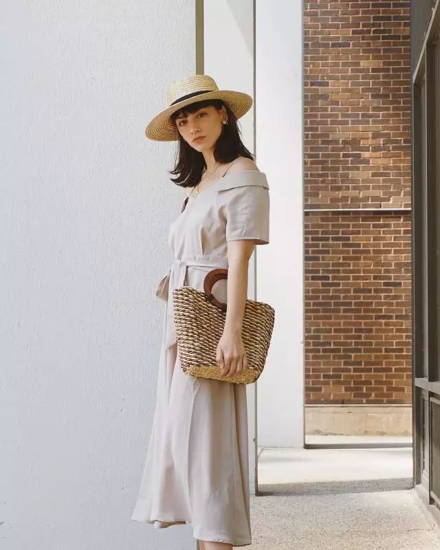 连衣裙的话,颜色也应该尽量选择浅淡一点的米白、淡粉、淡蓝....这样整个人也会显得更清爽阳光。深一点的颜色其实更适合秋冬季节~