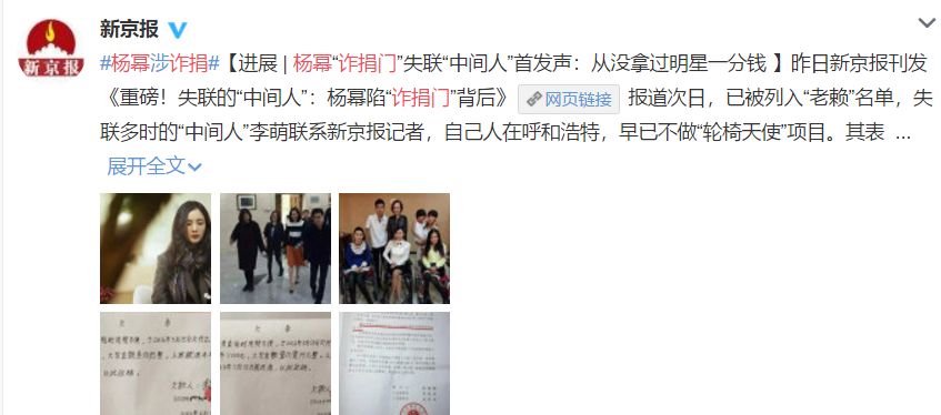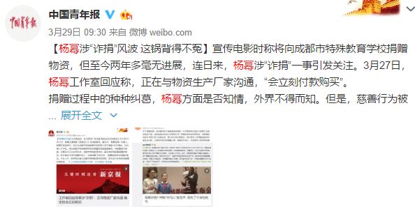 《中国青年报》官微发文称,杨幂涉嫌“诈捐”,这锅背的不冤;《新京报》还设置了相关话题跟进此事。