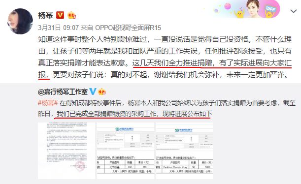 3月31日,杨幂及其工作室发微博道歉并承诺跟进此事。