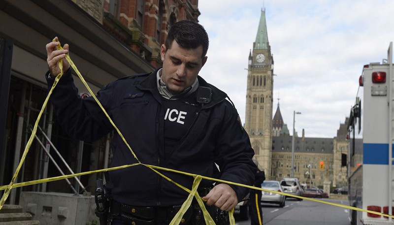 案发后,原本川流不息的渥太华市区已被封锁。警方出动大量警力确保议会大厦的安全,转移人员致安全地带,开始搜索另外可能存在的2到3名枪手。议会大厦直到当晚仍处在封锁状态,警备状态仍未解除。