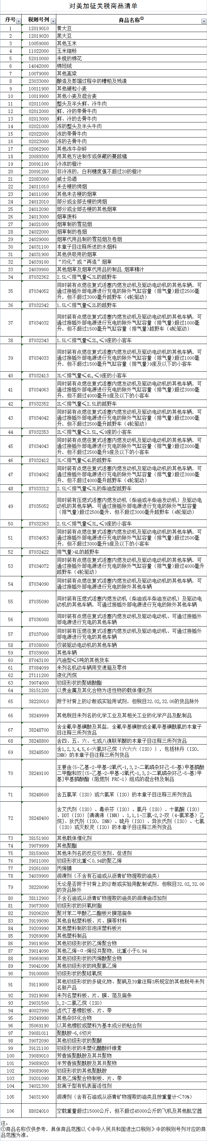 附表:中国对美加征关税商品清单(106项)