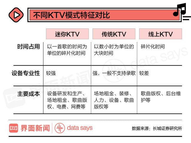 首台迷你KTV诞生于2013年,它是继传统KTV、线上KTV之后的第三种KTV商业模式。近年,迷你KTV能兴起,得益于其和其他两种产品定位存在明显差异,填补了消费者专业化K歌的日常需求。