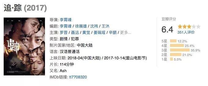 譬如,与其经历颇为相似的李霄峰导演。《少女娜扎》使崭露锋芒之后,李霄峰导演很快向主流市场靠拢,拍起了犯罪类型片《追踪》。略显遗憾的是,这部电影在电影节观影流露出来以后,口碑深陷两极分化,豆瓣评分也停留在了6.4分,情况大为不妙。