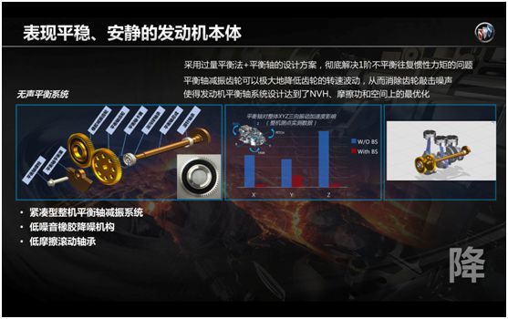致于发动机噪音的降低,别克这台1.3T三缸发动机已经做到极为优秀了。采用了很多先进技术不再赘述,但诸如平衡轴上的“橡胶减振齿轮”这类材料,依然是属于供应商链条里的稀有物种,有了这些技术上身,GL6的三缸机的发出的声响是横向竞品中最干净的,发动机的振动能量也被液压悬置隔绝掉90%,一来二去对乘员舱的影响已经很小。
