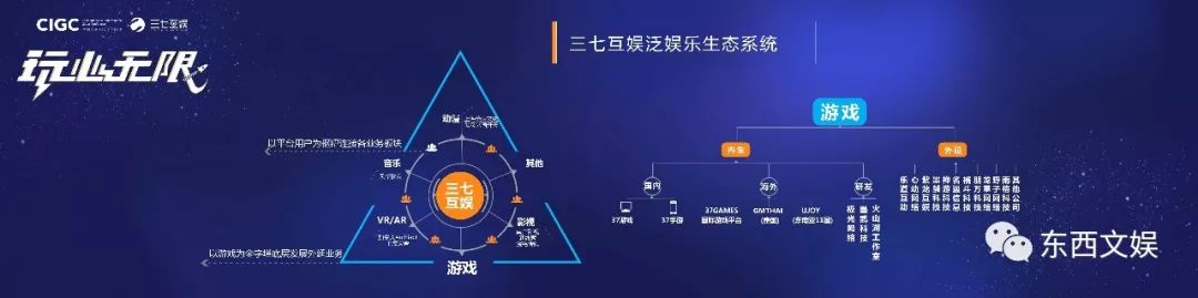 与之不同的是,三七互娱并没有追风设立自己的影业公司,依然采用外延投资的方式进行。杨军表示,游戏是三七互娱重中之重的基因,文娱投资是在为将来更长远发展作出布局。未来,游戏业务会与周边的影视、动漫、文学、VR/AR、音乐业务协同,最终形成一超多强的生态闭环。
