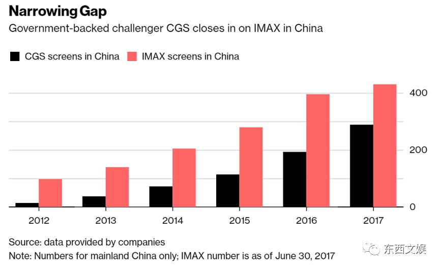 截至2017年末,中国巨幕在全国拥有288块银幕,这一数据接近IMAX2015底在华银幕数。不过与此同时,过去的两年也是IMAX的快速扩张期,截至11月20日,IMAX在大中华区已经突破500块银幕,加上已经签约的330家影院,IMAX在中国的银幕数将超过800。
