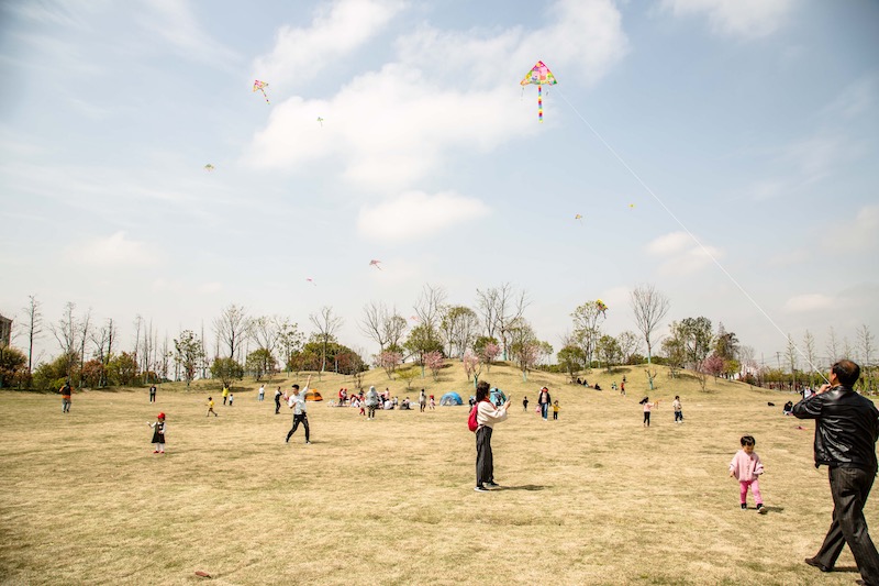 松江广富林郊野公园于2017年底正式开放,这是继青西郊野公园、长兴岛郊野公园、廊下郊野公园、浦江郊野公园、嘉北郊野公园之后,上海第六家开放的郊野公园。3月30日,人们在草地上放风筝。