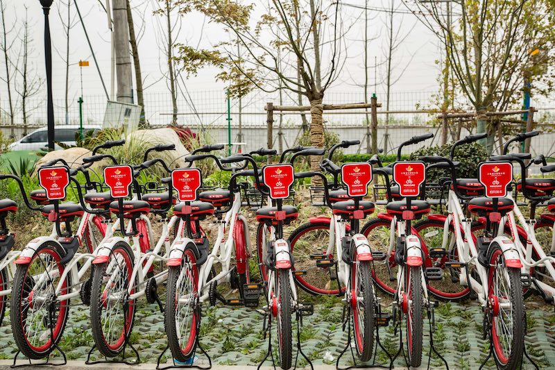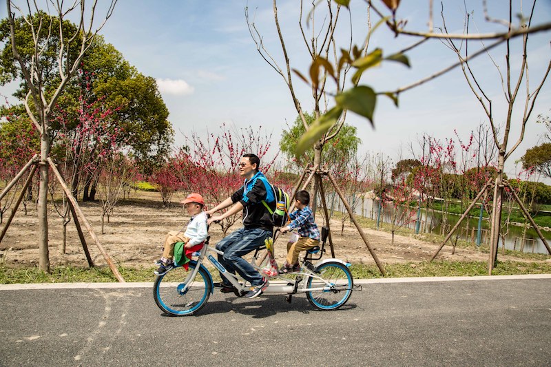 浦江郊野公园内也配备了共享单车,游客可在园内骑行。