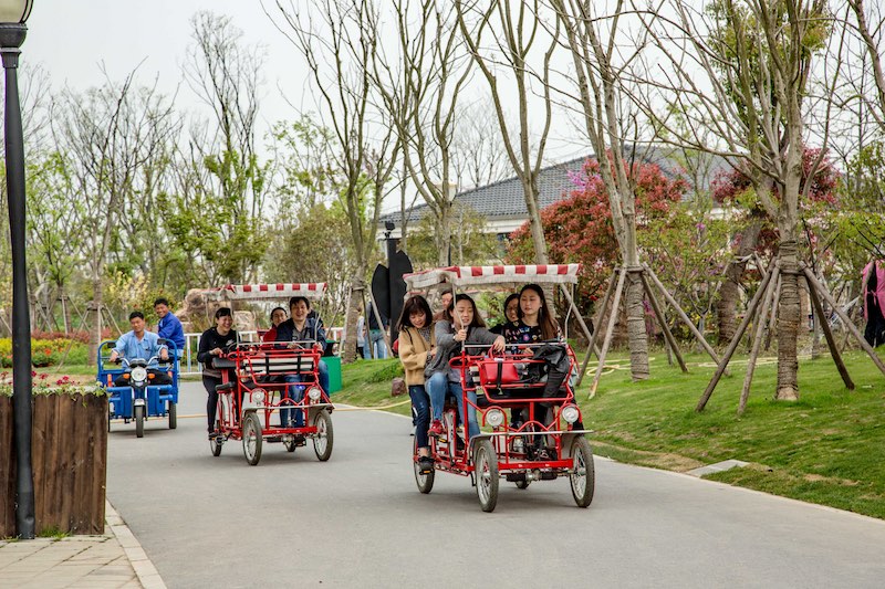 浦江郊野公园配备了四轮脚踏车,供游客骑行。