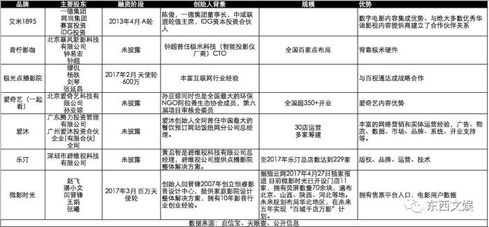 这类故事的想象力之一在于,与同质化的传统院线相比,点播院线从基因中就带有一定的分线的属性,目前风霆讯、爱奇艺、百视通、暴风、芒果、尚幕均已入局,最终可能形成内容优势的寡头。