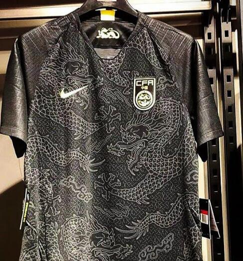 北京时间4月6日,足球装备网站footyheadlines以“令人震惊”作为标题,公布了2018年中国男足的新款客场球衣(男女足同款,国字号球队都会使用)。不同于主场新版沿用了一以贯之的红色,这一版客场球衣出人意料地选取了全黑色。唯一继承的老元素,就是球衣正面的龙型金色纹理。
