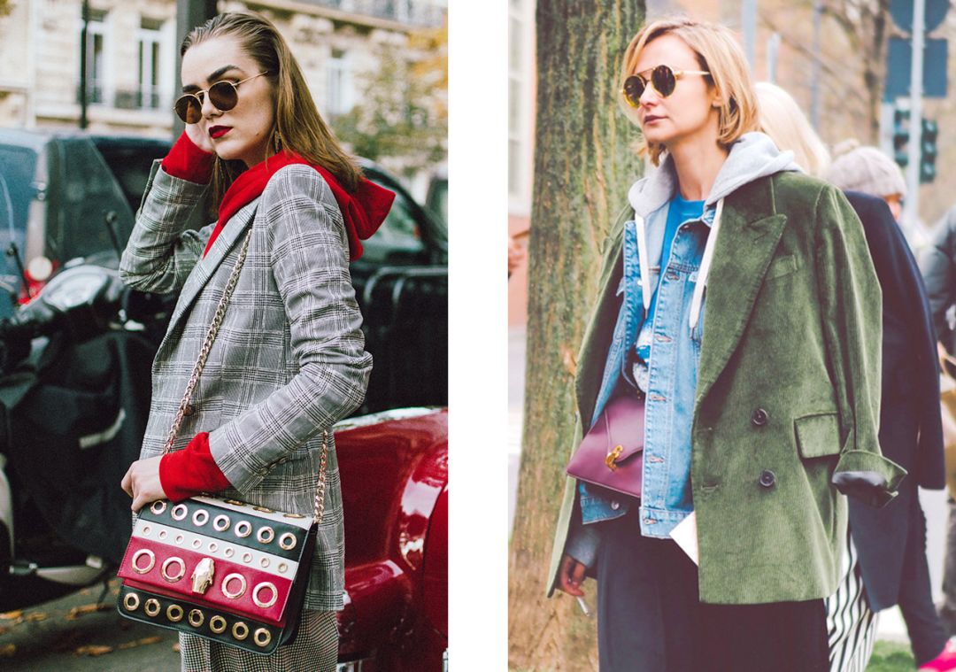 我最推荐的是用连帽衫配宽肩西装,因为整体廓型宽松,帽衫能套的进去,不会显得臃肿。