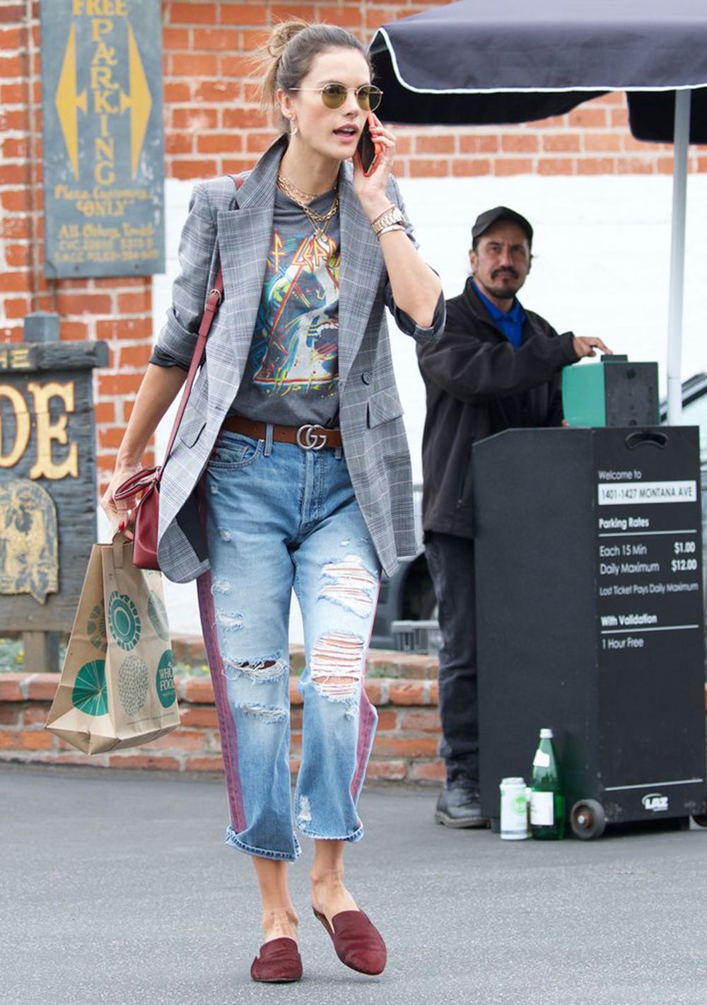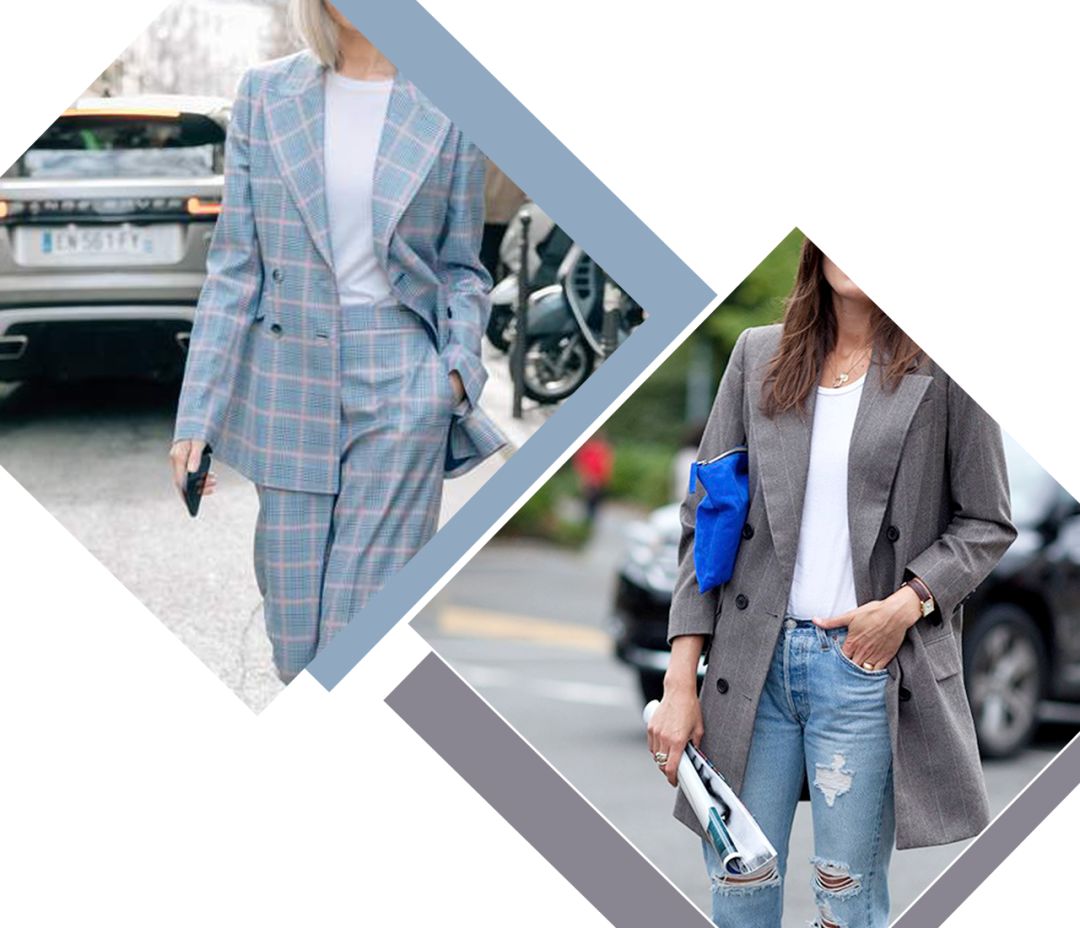 关于T恤搭配格纹西装,我还想说一点,很多人喜欢用这样的组合和牛仔裤搭,我强烈建议要搭就选无破洞且简单大方一些的款式。