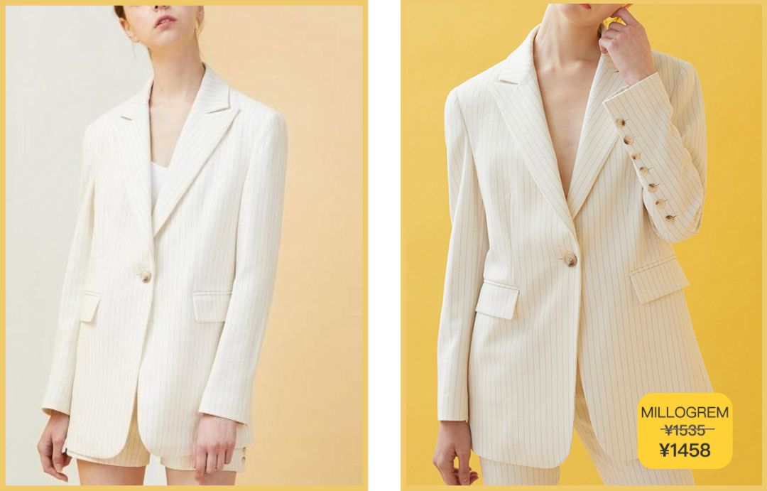不大精选上有两件自带不对称设计,还收腰的西装款式,特别适合懒癌患者和手残党。