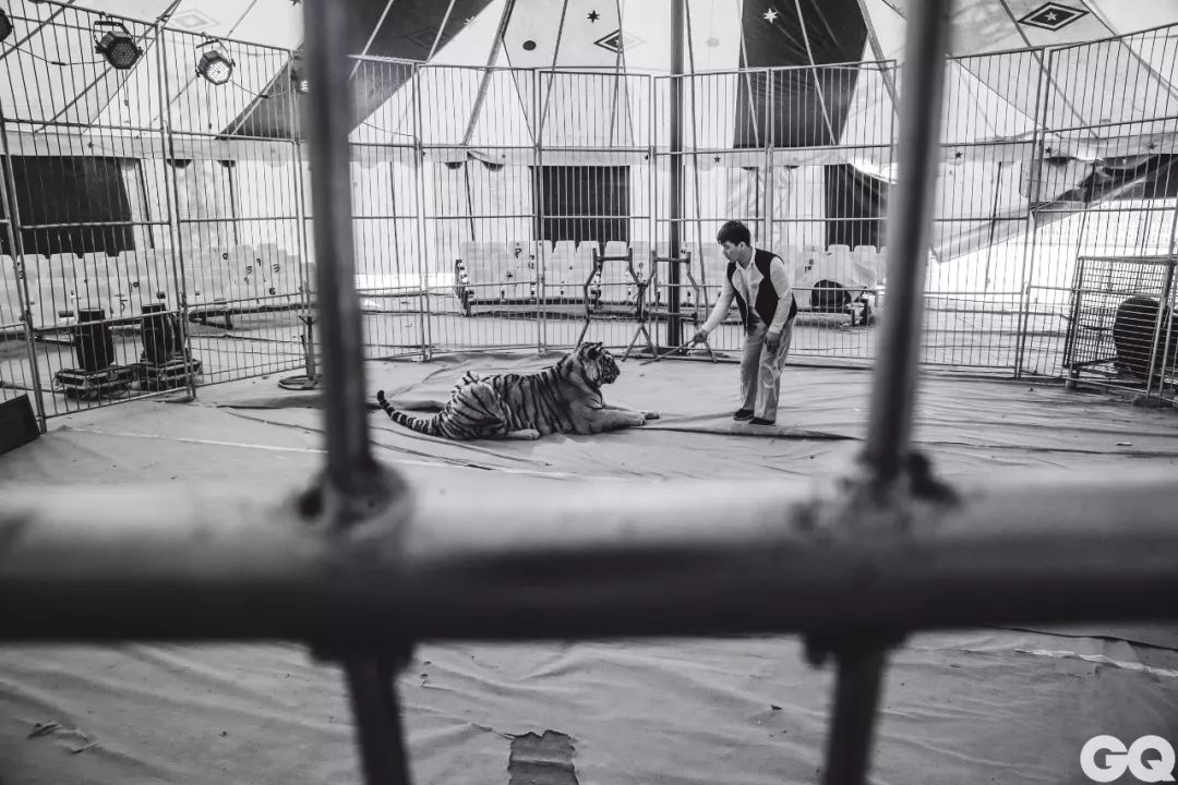驯兽不顺利,观众窃窃私语。空气里弥漫着粪便混着生肉的味道,大篷里只剩下激昂的音乐声、驯兽师“嗬、嗬”的呼喊声和棒子不断敲击围栏的声音。