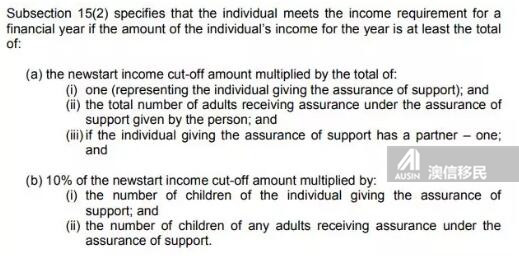 新政策调整了社会福利金的基数,提高到28,868.84澳元(Newstart income cutoff)。因此,经济保担人的年收入要求随之增加。举例说明: