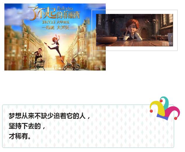 电影用极度逼真的3D技术还原了200年前的巴黎,并搭载奇幻的冒险场面和精美流畅的芭蕾元素,非常适合带孩子一起观看。有人说这个故事的结构和发展有点匪夷所思,是典型的法国鸡汤,但瑕不掩瑜,不影响我们去看一个小女孩为了梦想所做的努力。