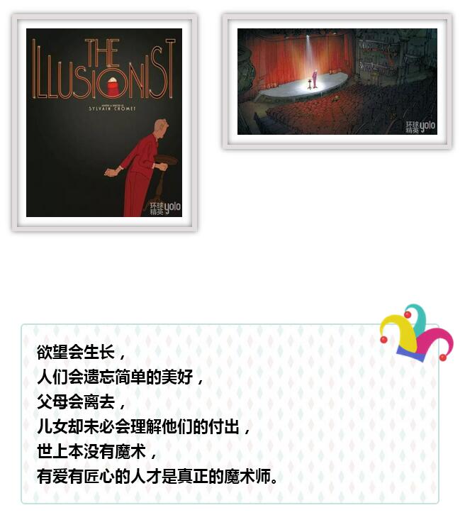一个经验丰富的魔术师过气了,他擅长的那些戏法——从帽子中变出个小兔子,手绢中变束花,已经不流行了,人们已经不再喜欢看魔术了。舞台上得体从容,现实中他却为了一点生活费而到处寻找演出的机会。直到有一次在苏格兰的乡间逗留时,魔术师结识了一个改变了他命运的小女孩。女孩相信世间有能把灰姑娘变公主的魔法,于是偷偷追随魔术师的脚步,离开了家乡。魔术师充当了父亲的角色。他们辗转来到爱丁堡,生活变得更加艰难,而为了满足女孩对魔法的幻想和对繁华世界的向往,魔术师不得不想各种办法去卑微地赚钱满足女孩的愿望。最终,在女孩终于找到了想要的一切时,他留下了一束花和一个“魔法并不存在”的字条消失了。