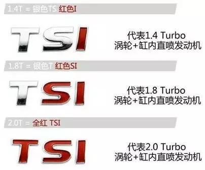 但是,以前的大众可没有标注如此清楚的数值,而是给TSI安排了三种组合来区分排量,银色TS红色I,代表1.4T涡轮+缸内直喷发动机,银色T红色SI,代表1.8T涡轮,全红色的TSI则代表2.0T涡轮。