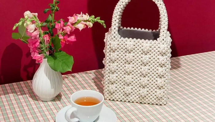 最先带来这一趋势回归的可能要属英国一个专门生产仿制皮草的品牌Shrimps ,它在2016年向市场推出了一款全珍珠绣制的Antonia包包。这款包看上去虽然很像批发市场里十几块钱一个的廉价手工包,但它更换了编制方法以及高品质的珍珠。