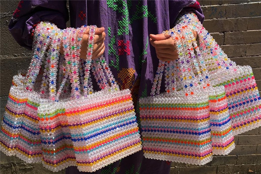 但如果你无论如何都接受不了带着成熟风格的珍珠,来自哥伦比亚的小众包饰品牌Susan Alexandra就用艳丽的色彩,用珠子串出了一系列生动形象的花卉、水果图案的绣珠包。