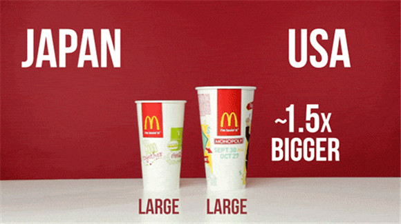 而美国的大杯则足足有30盎司,是日本的1.5倍。