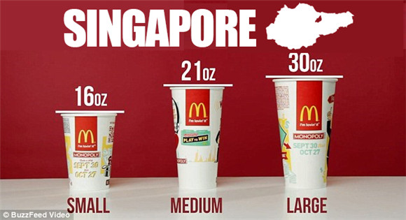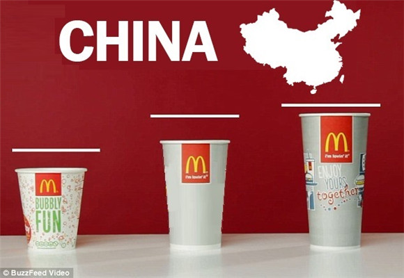 即便是麦当劳的大号杯子,美国的尺寸也是世界上首屈一指的。