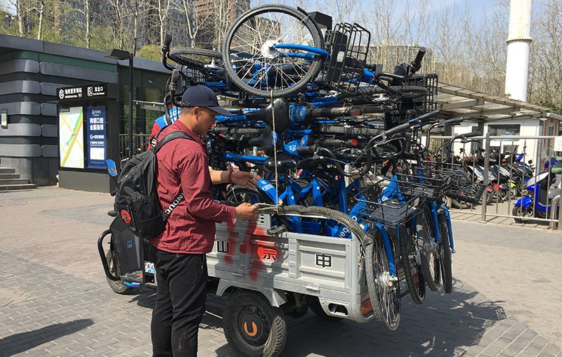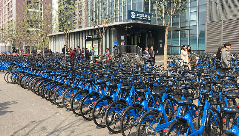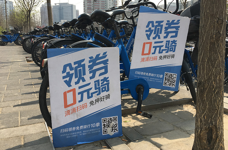 小蓝单车在北京展开推广,青桔单车在成都也正进行推广。