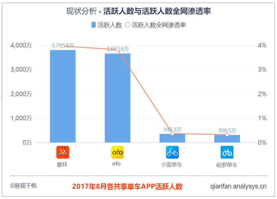 但小蓝单车的数量并不能与ofo和摩拜抗衡。小蓝单车CEO李刚在去年11月发表的公开信中曾提到,“半年的时间,累计投放了60万台车”。这与ofo和摩拜的投放量差距甚远,目前两者总共投放的单车数量已超过千万。另据36氪报道,滴滴计划在2018年投放约600万台单车,不过由于许多大城市禁止新增投放的限制,预计这些单车大部分会流向二三线城市。