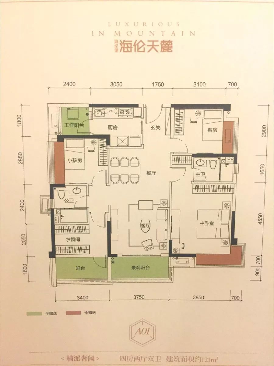 再来看看121平方米的四房双卫产品。