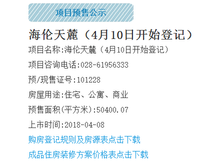 PS:以下为该项目本次预售信息,来源为成都房协官方网站。