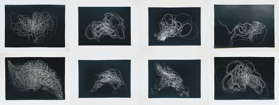 尽管机械臂主要是模仿Sougwen的动作和绘画,但由于机械臂的线条棱角更加清晰,加上Sougwen的即时创作,D.O.U.G 2.0已经可以和Sougwen完成非常有艺术感的作品。