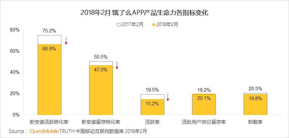 QuestMobile数据显示,口碑APP留存率低于行业平均水平,卸载率高于行业平均水平。饿了么对口碑的流失用户具有一定的覆盖度,将有助提升口碑的用户流转效率,有助于提升用户召回。