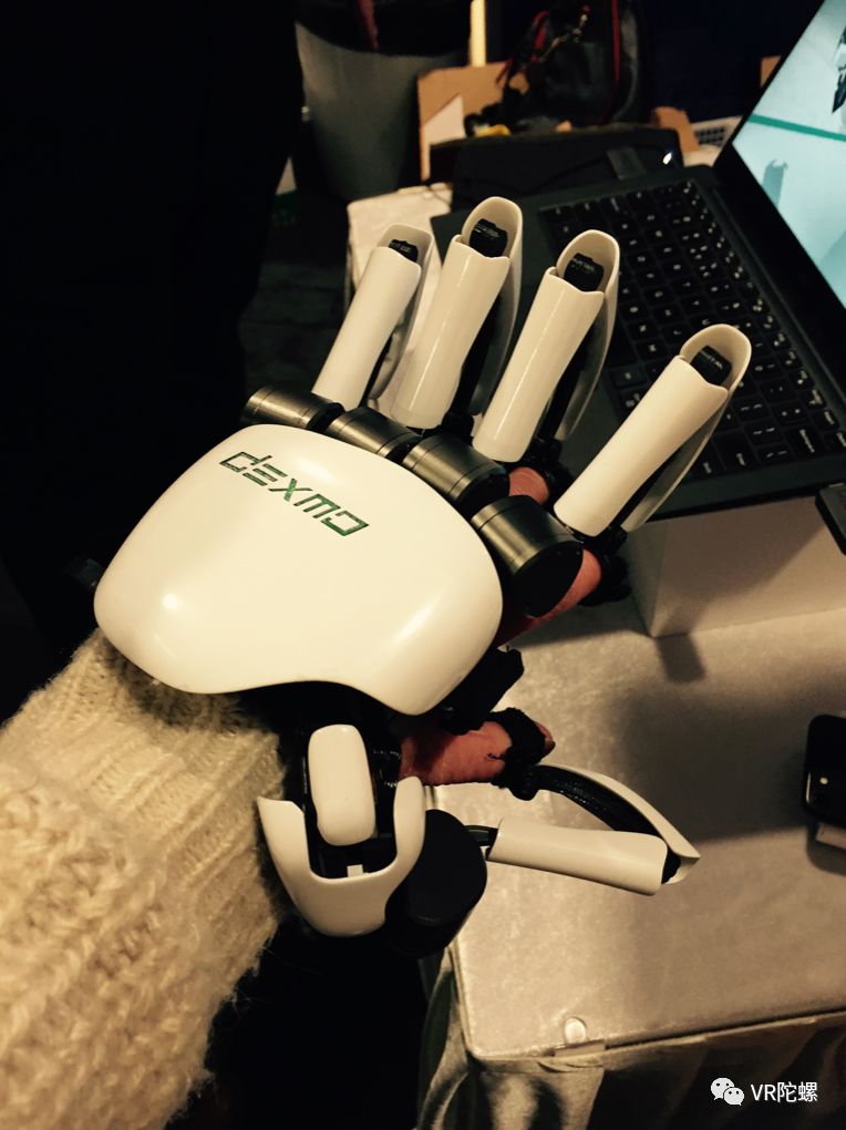 其实早在去年的一次行业活动上,陀螺君就曾经体验到这款Dexmo手套,其酷炫的外形也让多人驻足,争相排队体验。