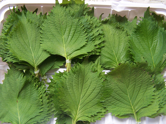 在日本,刺身总是和紫苏叶一起出现——它和菊花、萝卜泥等一起,被称为刺身之”妻“,其重要性可见一斑。这种绿油油的圆卵形叶子又称”大叶“,原产中国,具有特异的芳香。