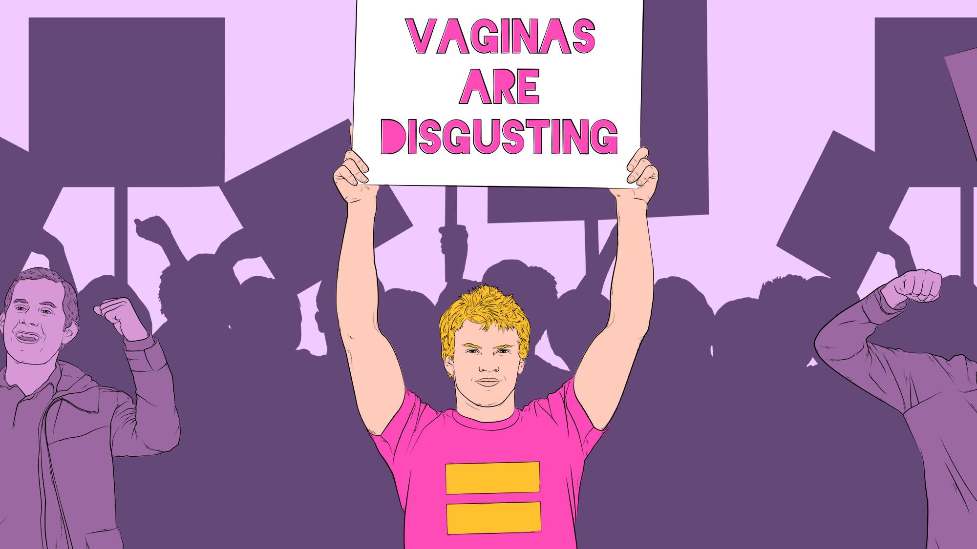 我们通常期望男孩和年轻男性背叛他们的天性,压抑他们的良心,放弃他们内心的善良,转而遵守更低级更卑鄙的规则。就好像要成为一个真正的男人只有一种方式,对这个角色只有一种合理的解释。有各种各样的压力让他们穿上“厌女症”的统一制服,加入倡导和贯彻性别歧视的“白痴军团”。而更让我悲痛的是,不仅仅是男性给孩子们施加压力,让他们成为这样。