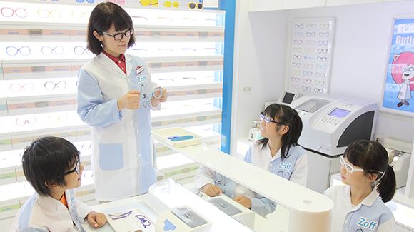 ▲ 孩子们在日本Kidzania体验眼镜销售工作。