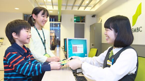 ▲ 孩子们在Kidzania里的银行做存取款业务。