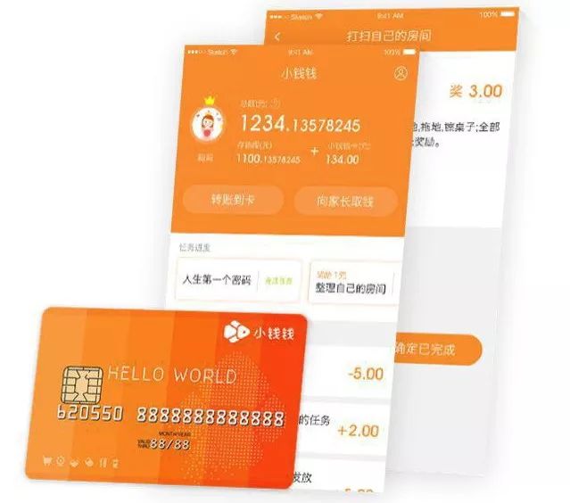 “小钱钱”旨在通过少儿消费卡、家长及儿童端应用软件打造6岁以上少儿财智养成解决方案。目前,“小钱钱”移动端应用已上线公测,但小钱钱卡尚未正式上线。