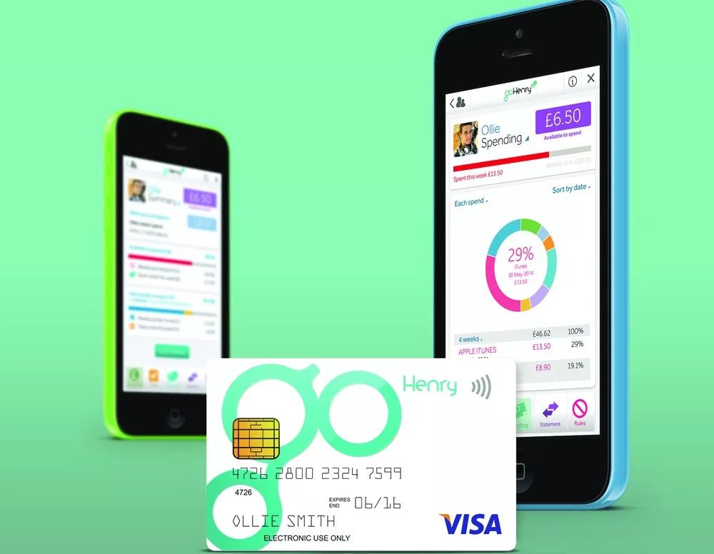 创立于2012年的 goHenry 是为青少年提供消费金融解决方案的英国科技金融公司,为6至18岁的儿童提供带家长控制功能的 Visa 预付费借记卡。家长通过应用软件来设置消费规则、定期零用钱转账。当孩子进行消费时,家长会收到实时提醒。