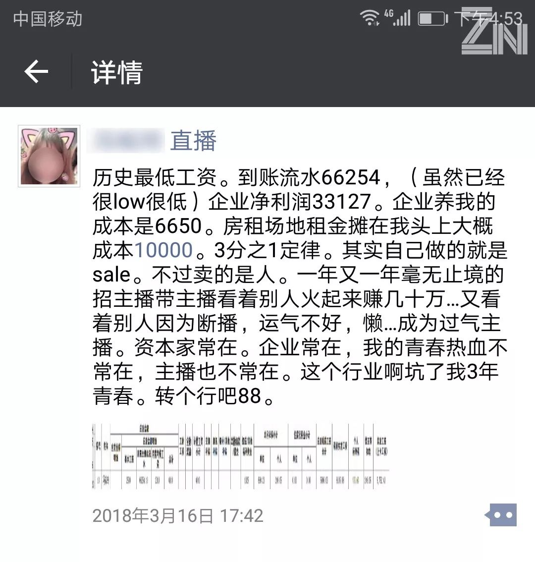 一年前,地位还等同于公司职业经理人的冯婷(化名),虽然每天在给刚入行的新人灌输着“月薪十万”的梦。但她坦言,现实是,公司签约的主播中,月薪过万的,十个当中,能有一个,已经算是幸运。