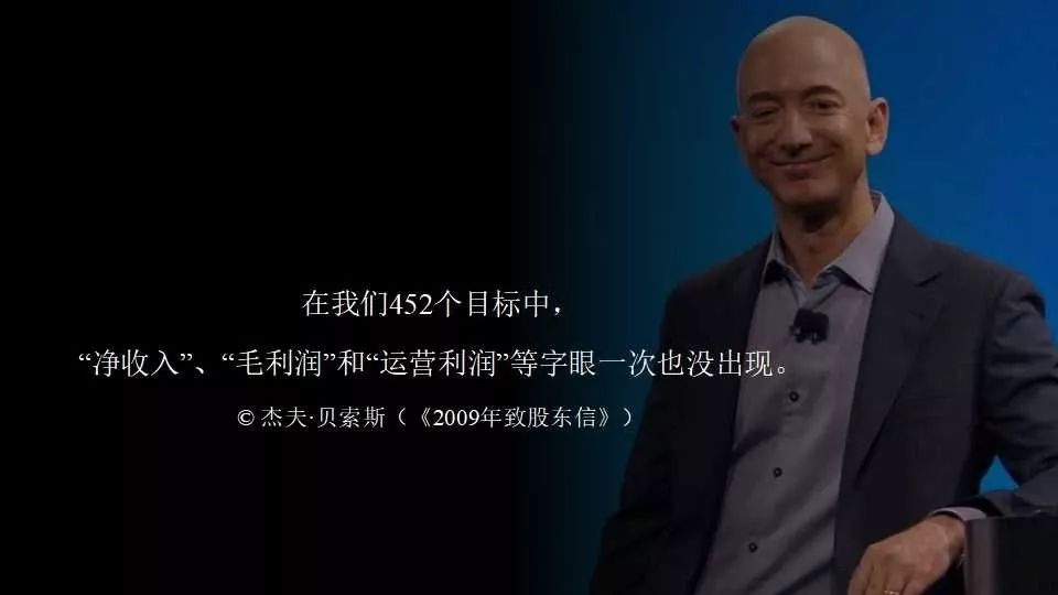 在我们452个目标中,“净收入”、“毛利润”和“运营利润”等字眼一次也没出现。—— 杰夫·贝索斯 《2009年致股东信》