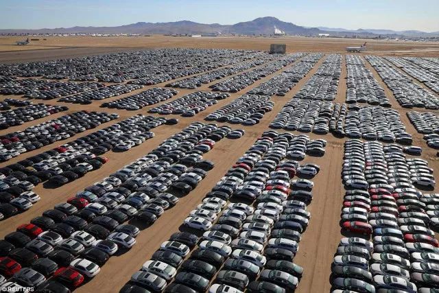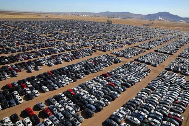 大众汽车因为柴油尾气排放作弊丑闻后被迫以74亿美元,约合人民币464亿元的价格购回35万辆有问题的汽车,并把他们存放在美国加州的沙漠里。