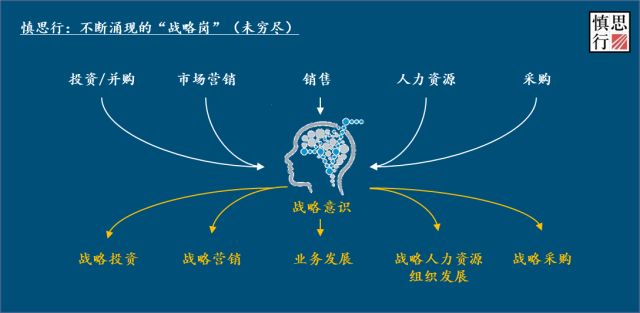 一些具备组织战略意识的成熟企业,甚至是现在崛起的互联网巨头,都在不断重塑和演化传统职能,将战略意识的边界拓宽以填补战略链条中的“缝隙”。我们也才会看到组织中不断涌现出与各个具体职能活动相结合的“战略岗”,即战略管理职能的“变形”。这些“战略岗”的出现强化了特定职能的战略性角色,其更重要的意义也在于推动战略计划至执行之间的缝隙闭合。