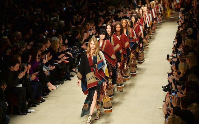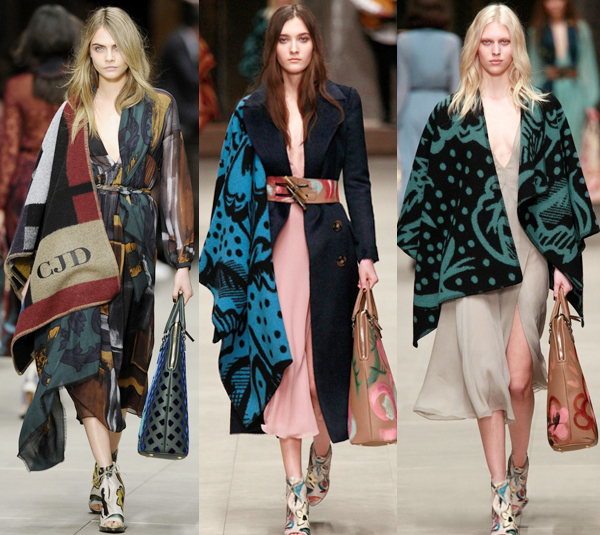 最早是在Burberry Prorsum 2014秋冬秀场。当超模Cara Delevingne领衔所有模特身披毛毯浩浩荡荡谢幕时,现场观众无一不被这股强劲的西伯利亚冷风突袭所震撼,体会到一种苍茫的游牧感,又混杂着一丝丝古典文艺气息。