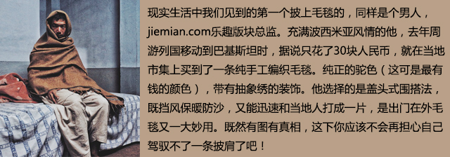 最后要提醒的是,并不是所有毛毯都能当外套,更不是随便在家里翻一块毯子出来就可以披上出门。质感是最重要的,好的披肩得有一定的分量及厚度,材质以羊毛羊绒成分为佳;最好不要是纯色,不然真的就像是块毛毯,格纹图案是保守不出错的选择。时刻记得在你披上身那一刻,它就是一件最热的时髦单品,它从来就不是一块只为保暖御寒而生的毯子。