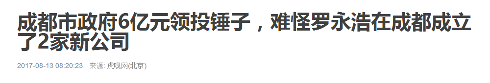 10亿融资,大部分来自成都市政府。拿到了来自官方的钱,这对于老罗来说,算是人生第一次。为此,老罗做了不少妥协,把公司总部搬到成都,买下人生第一套房,并且为成都楼市卖力吆喝。